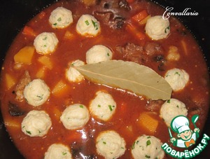 За 20 минут до готовности на рагу выложить клецки и лавровый лист.