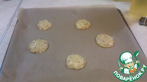 Выложить на пергамент для выпечки (я это делала с помощью десертной ложки, смоченной водой) на расстоянии, т. к. они очень растекаются, придать круглую форму.