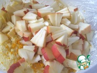 Два яблока режем небольшими кусочками и смешиваем с творожной массой.
