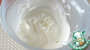 Достаем из холодильника белки, взбиваем с половиной сахара до мягких пиков и осторожно вводим в творожную массу.