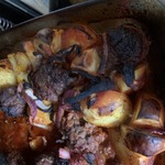 Вкусная картошечка с мясным фаршем, тушеная в томатном соке.