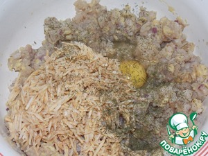 Грудку вместе с луковицей прокрутить через мясорубку.
