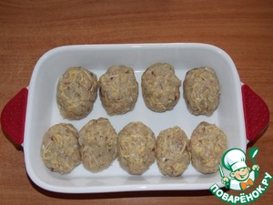 Сформовать котлетки, выложить в смазанную маслом форму для запекания.