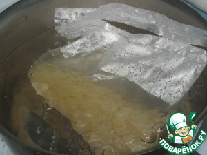 Тем временем рис сварился, вынуть его из кастрюли, освободить от пакетика.