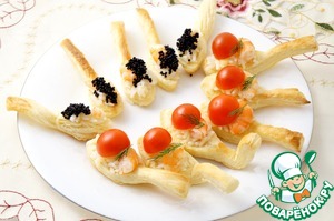 Украсить волован половиной помидорки черри или икрой палтуса.