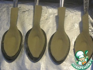 Переложить заготовки из теста на смазанные маслом и сбрызнутые водой ложки, слегка придаваить пальцем серединку.