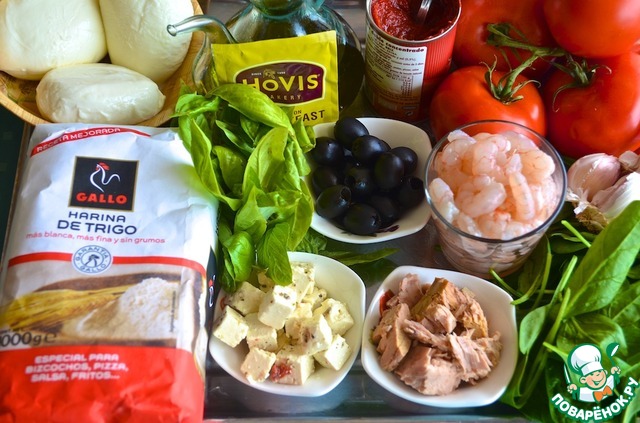 Ингредиенты для «Пицетты рыбные и овощные»: