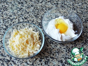 Рикотту подсолить, смешать с яйцом. Твердый сыр натереть на крупной терке.