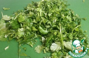 - Зелень (любимая, у меня - укроп, петрушка, кинза) — 1 пуч.