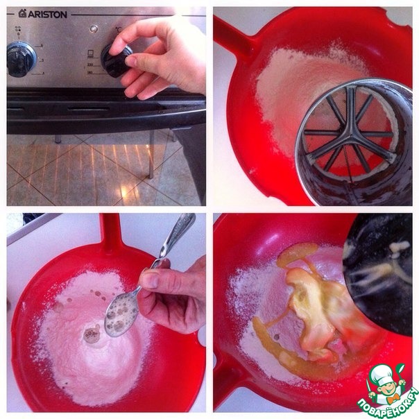 1. Духовку нужно разогреть до 180 градусов. Муку просеять и добавить соду. Растопить сливочное масло.