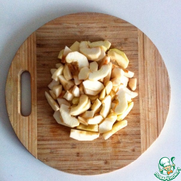 4. Яблоки почистить и нарезать тонкими и маленькими кусочками.