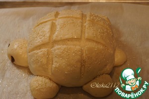 Ставим черепашку в разогретую предварительно духовку и выпекаем до готовности.