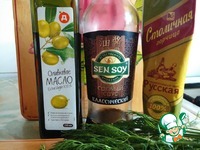 Для заправки: мелко измельчить укроп, добавить к нему соевый соус, горчицу и оливковое масло. Перемешать.