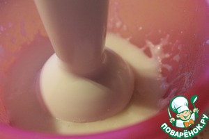 Рисовые хлопья залить кипятком, накрыть блюдцем и оставить на 3 минуты. Готовые хлопья измельчить с помощью погружного блендера, до однородного состояния.