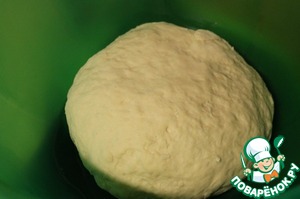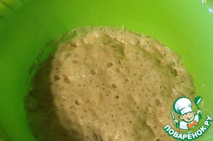 Сначала нужно приготовить опару. Для это смешать все ингредиенты в глубокой миске, накрыть полотенцем и оставить на 15 минут в теплом месте.