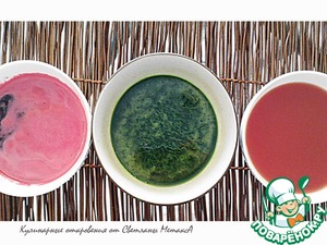Для теста 2,3,4 также готовим опару, только вместо воды используем соответственно: шпинатный, свекольный и томатный соки