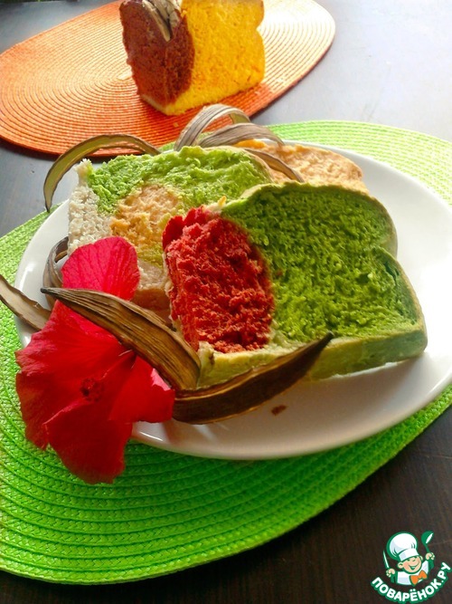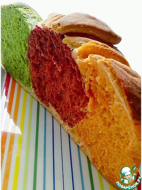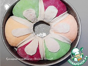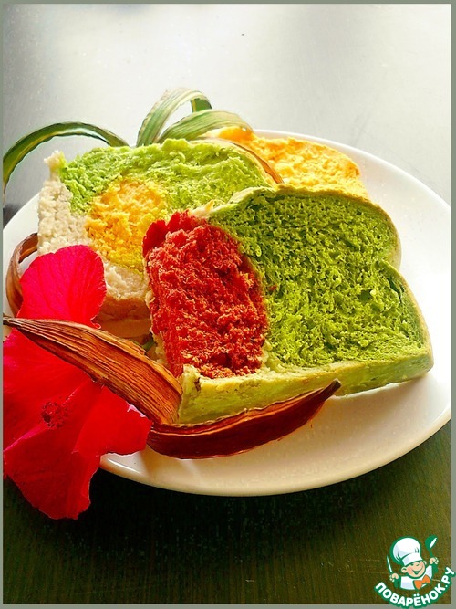 [+4]Большой хлеб выкладывала кусочками разного цвета