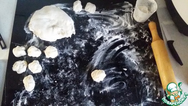 Берем обычное дрожжевое тесто, разделяем на небольшие шарики по 30г.