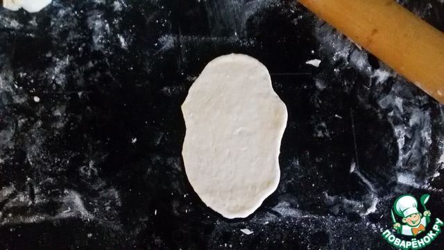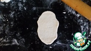 Скалкой раскатываем шарики теста и придаем им овальную форму