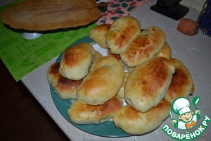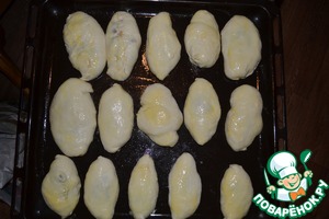 Лепим пирожки, смазываем взбитым яйцом и в духовку.