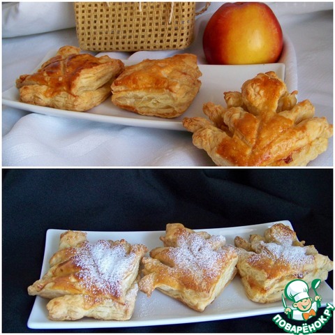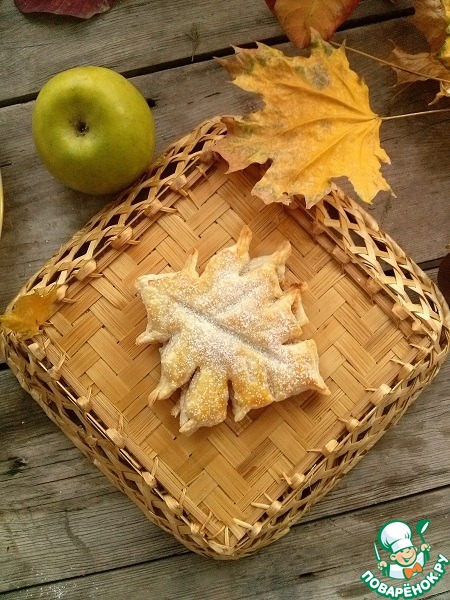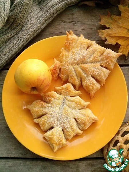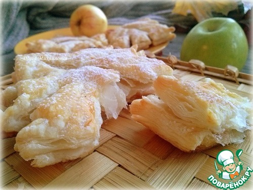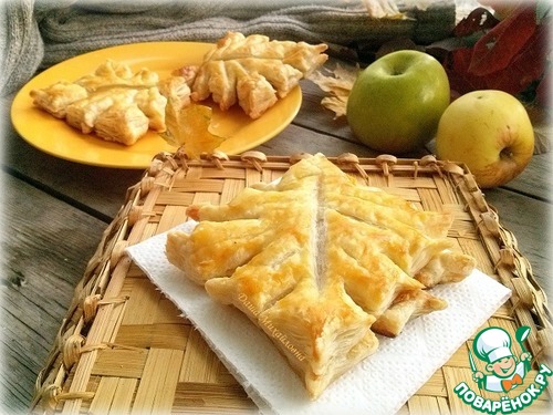 Ингредиенты для «Слоеные листочки с яблоком»: