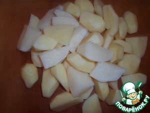 Картофель очищаем, разрезаем на 2 части, если крупный на 4.