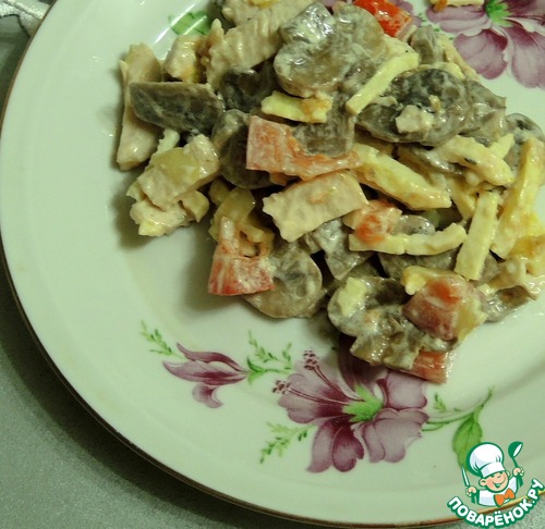Рецепт «Салат из запечённой курицы, шампиньонов и помидоров»: