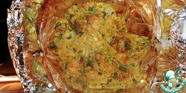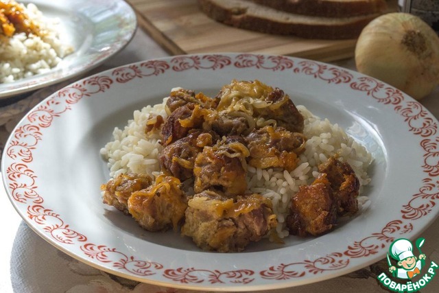 Свинина в луке, запеченная в рукаве