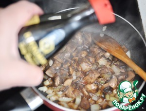 Наливаем в грибы 2 ст. ложки соевого соуса.