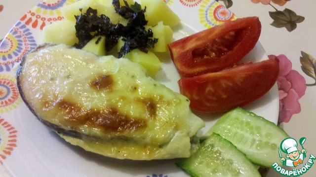 Подаём рыбу сразу горячей, по желанию украшаем зеленью.
