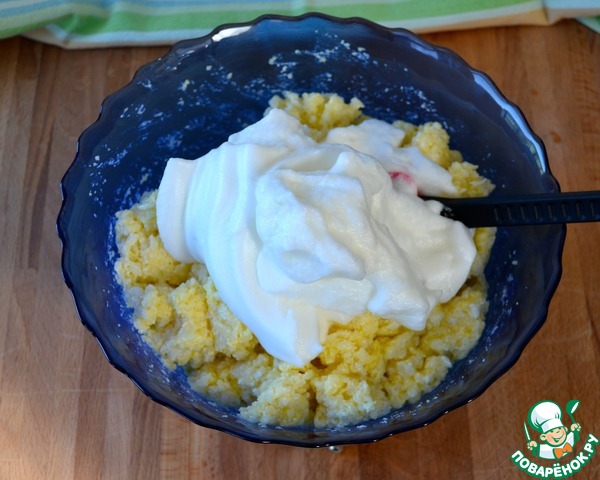 Белки взбить с щепоткой соли и добавить к рисовой массе. Осторожно перемешать.