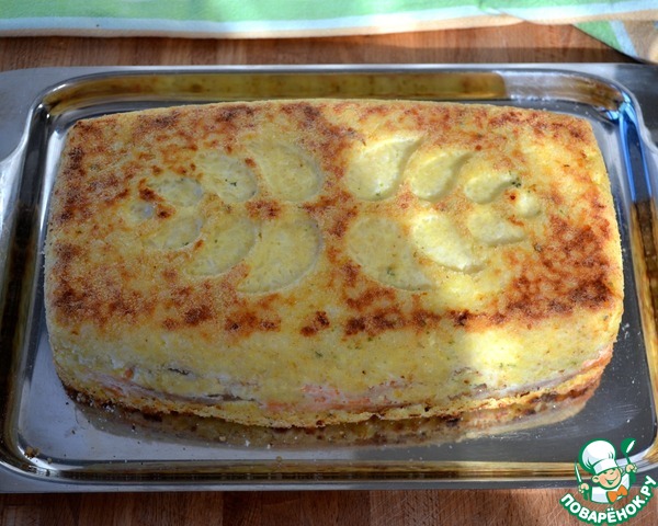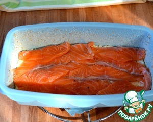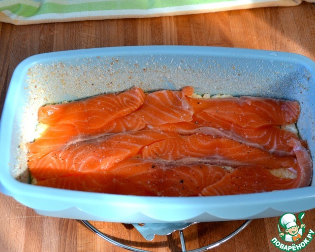 Сверху выложить слой рыбы. Слегка посолить и поперчить (по желанию). И так далее...