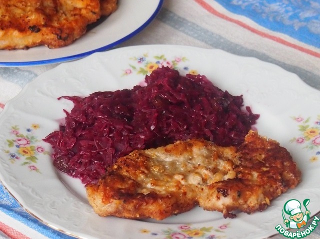 Можно подать со шницелем или отбивной котлетой. Эта капуста дружит с любым мясом и находится в прекрасных отношениях с картофельным пюре. Ваши гости обязательно попросят у вас рецепт!