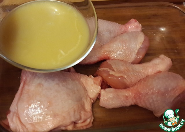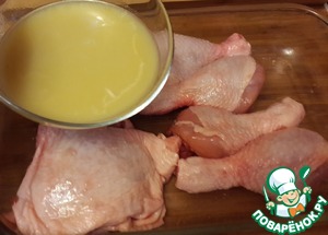 Залейте этим маринадом куриные ножки (можно также готовить и другие части курицы)
