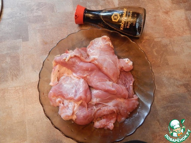 Для приготовления взят соевый соус ТМ "Киккоман".