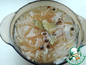 Воду (500мл, указанных в рецепте)немного нагреть и подсолить. Замочить в ней лук до остывания