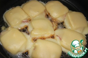 Хорошо обмакиваем в тесте нашу начинку и выкладываем в разогретую сковороду с маслом. Обжариваем с двух сторон до румяной корочки.