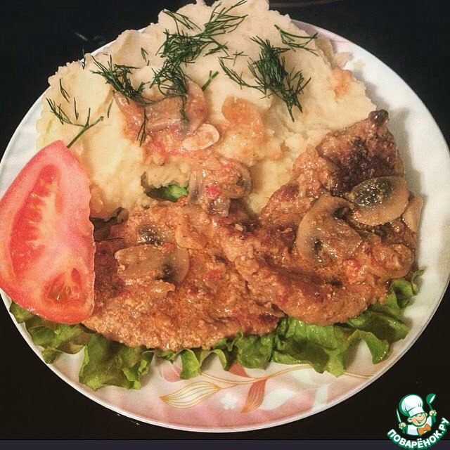 Отбивная из говядины "Язык проглотишь" с соусом и грибами. Хозяюшки, мужчины язык проглотят.