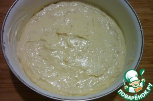 Форму для выпекания смазать маслом и обсыпать мукой, излишки стряхнуть. Вылить тесто и разровнять.