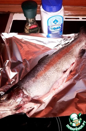 4. Начиняем форель кружочками мандарина, заворачиваем в фольгу очень плотно, чтобы сохранить сок и аромат.