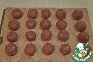 Лук натереть на терке или очень мелко нарезать. Смешать с фаршем, добавить сухари, соль и перец. Хорошо вымесить и отбить фарш. Скатать небольшие шарики, разложить их на доске и убрать в холодильник, чтобы окрепли.