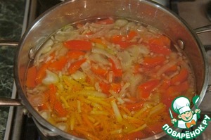 Добавить черешковый сельдерей, фенхель и перец, посолить и варить после закипания еще 5 минут.