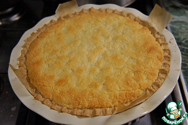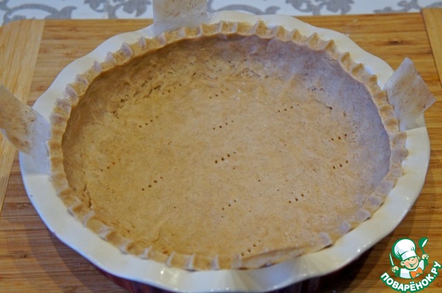 • Переместить тесто в форму, уложить таким образом, чтобы получились бортики и многократно наколоть вилкой. Убрать в холодильник на 30 минут.
