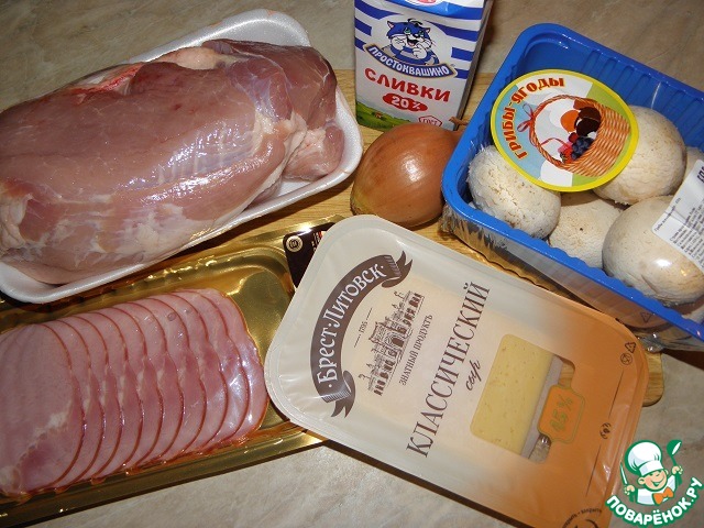 Ведь скоро праздники друзья! И Новый год к нам в дверь стучится! Рецепт один напомню я, а вдруг кому- то пригодится! Запечем в духовке мясо, сыр, грибы и ветчину! Соус сливочный прекрасно их дополнит ко всему! Очень нежно! Очень сочно блюдо получается! Всем понравится уж точно! Праздник не кончается!