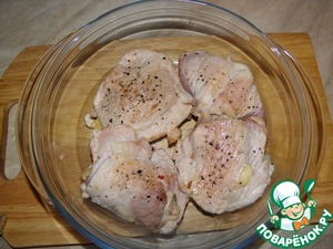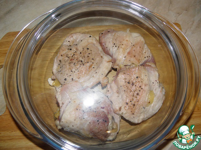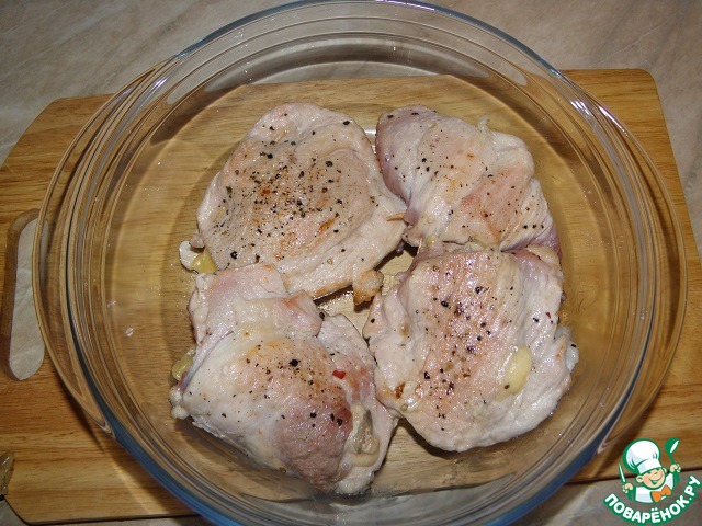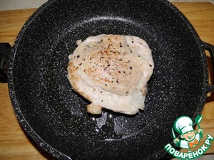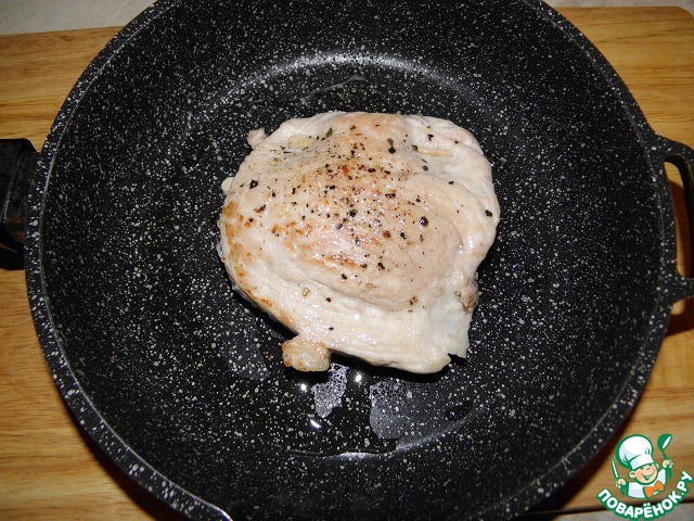 Нарезанные куски слегка отбить, посолить, поперчить.