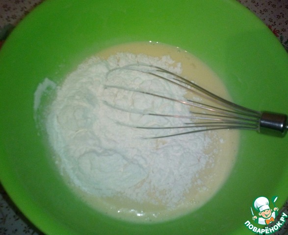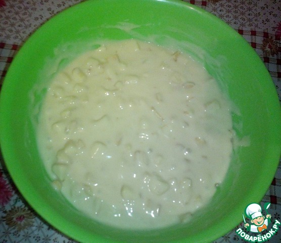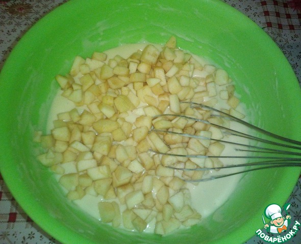 В тесто добавляем любые фрукты или ягоды, у меня яблоки мелко порезанные