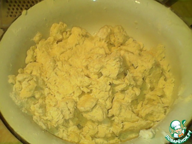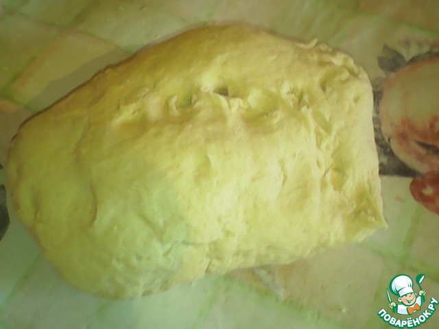 Добавить по необходимости муку. У меня ушел еще стаканчик муки, пока вымешивала тесто. Тесто должно липнуть к рукам.