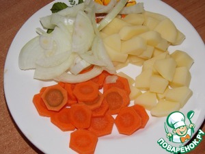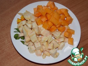 Подготовить овощи, почистить и порезать небольшими кубиками.