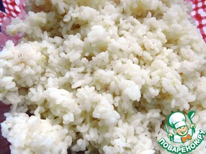 Рис промыть, отварить в подсоленной воде, затем остудить.