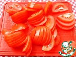Помидоры нарезать ломтиками. Часть ломтиков оставить для украшения.